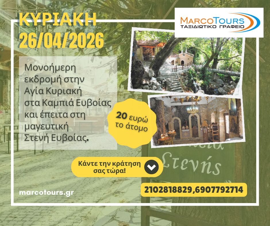 Μονοήμερη Εκδρομή στην Αγία Κυριακή στα Καμπιά Ευβοίας και έπειτα στη μαγευτική Στενή Ευβοίας.